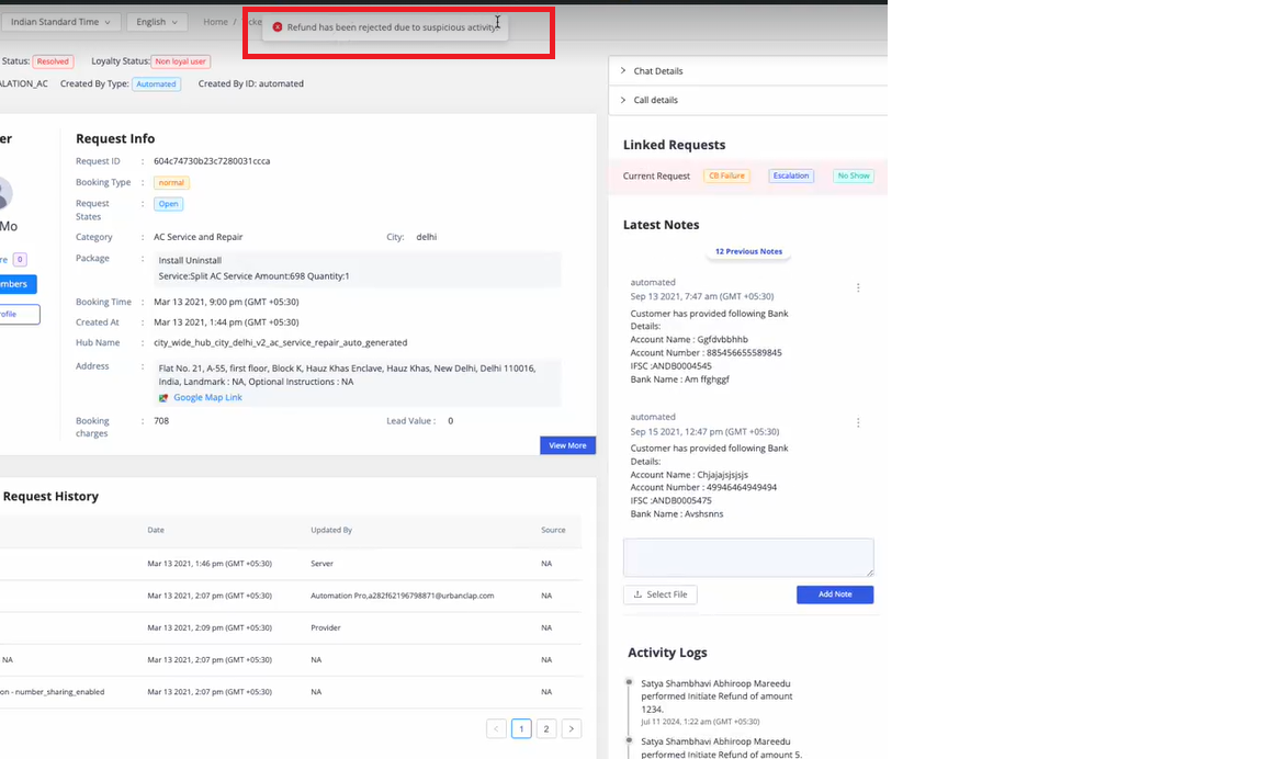 We have launched a new process where you will receive an error when you try to initiate a refund in the customer’s bank accounts which is identified as Fraud.